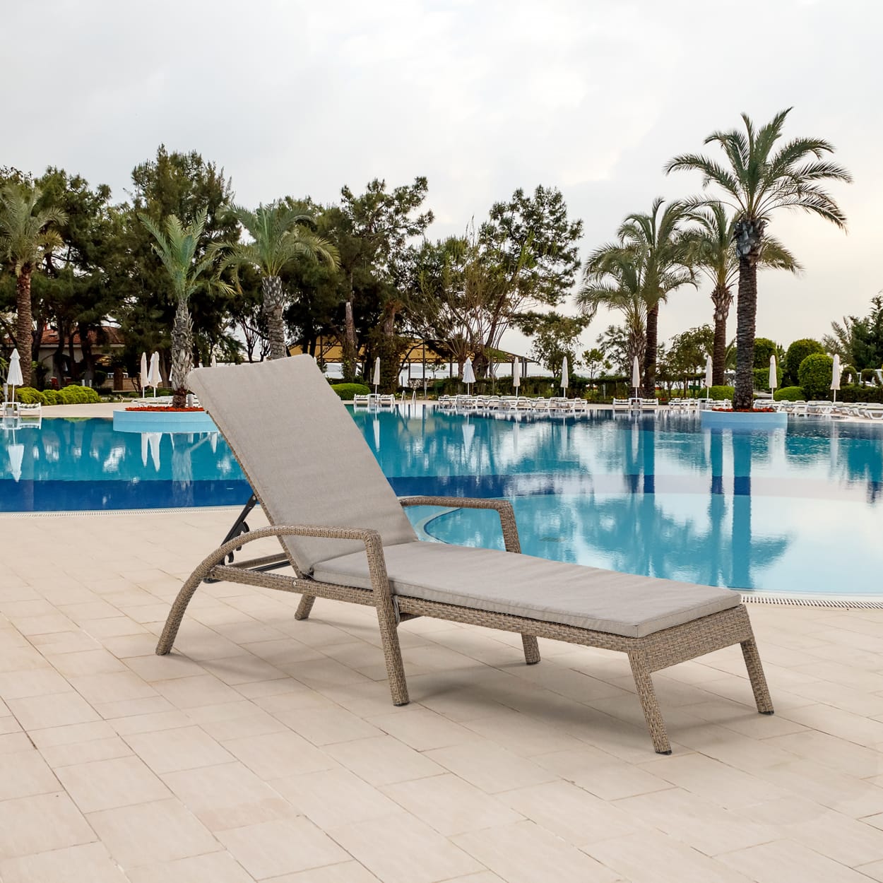 Шезлонг-лежак плетеный A30B2-W56 Light Brown с матрасом
